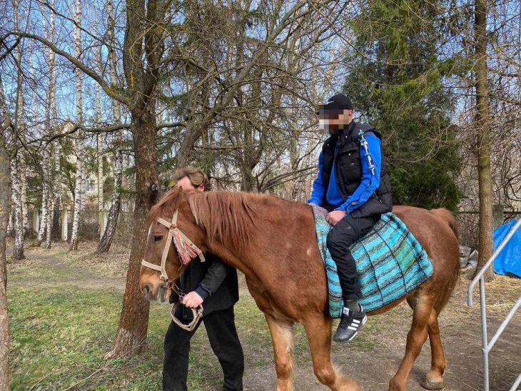 З військовими працював іпотерапевт пан Ігор. Він сам колишній військовий, мав свого часу поранення також, через це й був демобілізований. Іпотерапією займався ще до повномасштабного вторгнення, потім пішов на фронт, отримав поранення і тепер допомагає вже іншим військовим.