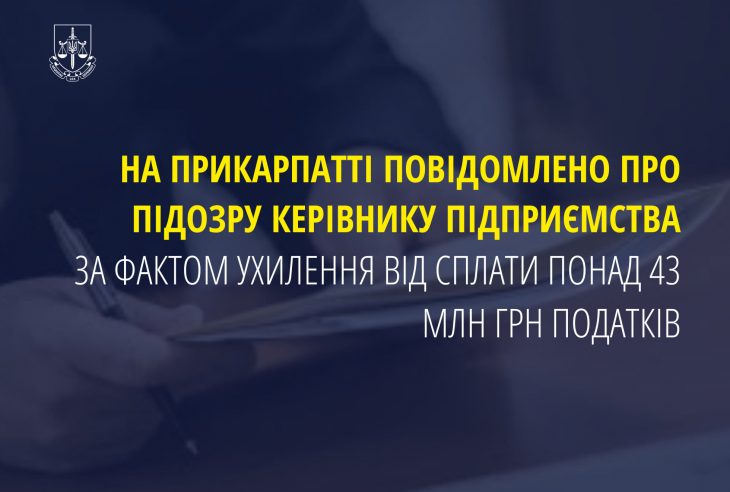 На Прикарпатті повідомлено про підозру керівнику підприємства за фактом ухилення від сплати понад 43 млн грн податків