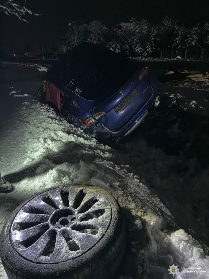 Унаслідок зіткнення автомобіль «Tesla» з’їхав у кювет. Водій «BMW» після скоєння дорожньо-транспортної пригоди залишив місце події.
