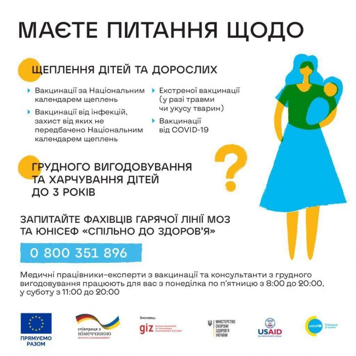 За цей час оператори лінії, а це лікарі та медсестри, надали консультації щодо щеплень дітей та дорослих, грудного вигодовування та харчування маленьких дітей для майже пів мільйона українців.