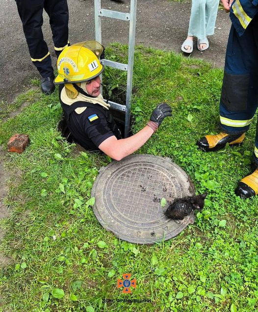 Сьогодні рятувальники дістали з каналізаційної ями пухнастого улюбленця маленької дівчинки.