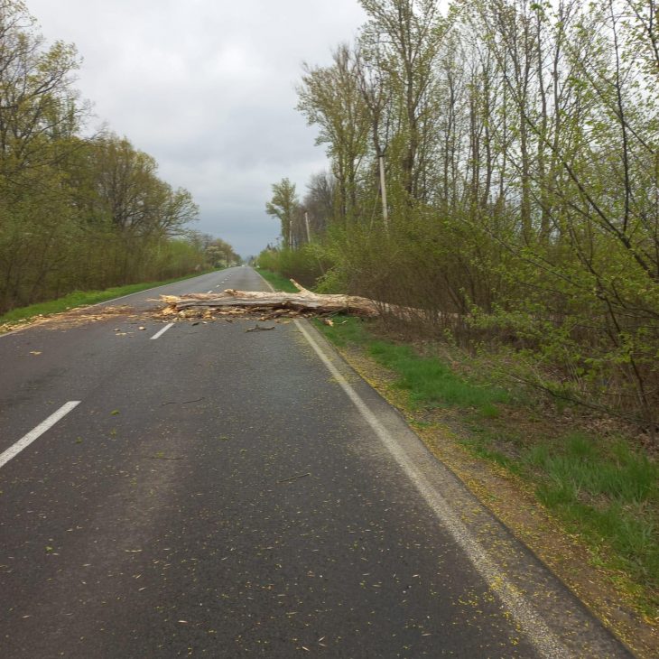 Наслідки буревію на дорозі Р-24 Татарів — Камʼянець-Подільський, км 131+150. Бригада підрядної організації оперативно прибрала перешкоду з проїзної частини.