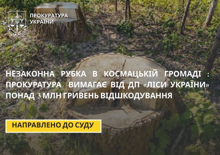 Незаконна рубка в Космацькій громаді : прокуратура вимагає від ДП «Ліси України» понад 3 млн гривень відшкодування