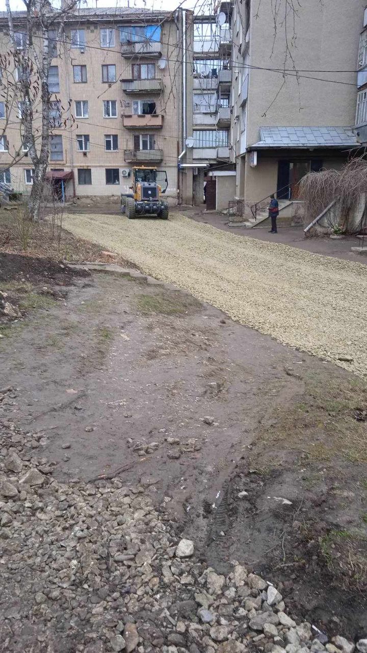 Тут підсипали та розгорнули щебінь у дворі багатоквартирних будинків і забезпечили проїзд автотранспорту, адже раніше дорога у дворі була в аварійному стані.
