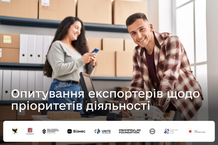 Опитування проводиться в межах програми «Розбудова регіональної інфраструктури підтримки експортерів», яка реалізується громадською асоціацією Unite Ukraine спільно з Офісом з розвитку підприємництва та експорту, національним проєктом Дія.Бізнес за підтримки проєкту Міжнародного торговельного центру «Підвищення економічної стійкості громад, що постраждали під час війни», який фінансується Урядом Японії.