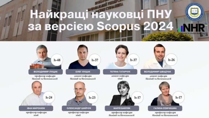 Восьмеро вчених Прикарпатський Національний Університет Ім.В.Стефаника увійшли до переліку найкращих науковців країни за версією наукометричної бази даних Scopus 2024.