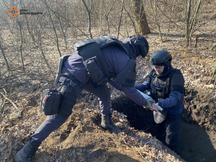 Піротехніки з Івано-Фрнаківщини продовжують виконувати небезпечну і надзвичайно важливу роботу з розмінування української землі. Особовий склад групи піротехнічних робіт, після чергової ротації, на даний момент працює на Донеччині. Сапери щодня здійснюють обстеження територій та знешкодження вибухонебезпечних предметів.