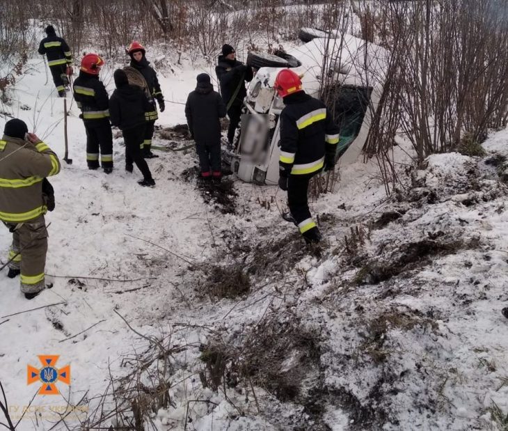 На місці події рятувальники провели заходи з буксирування та встановлення автомобіля на колеса.
