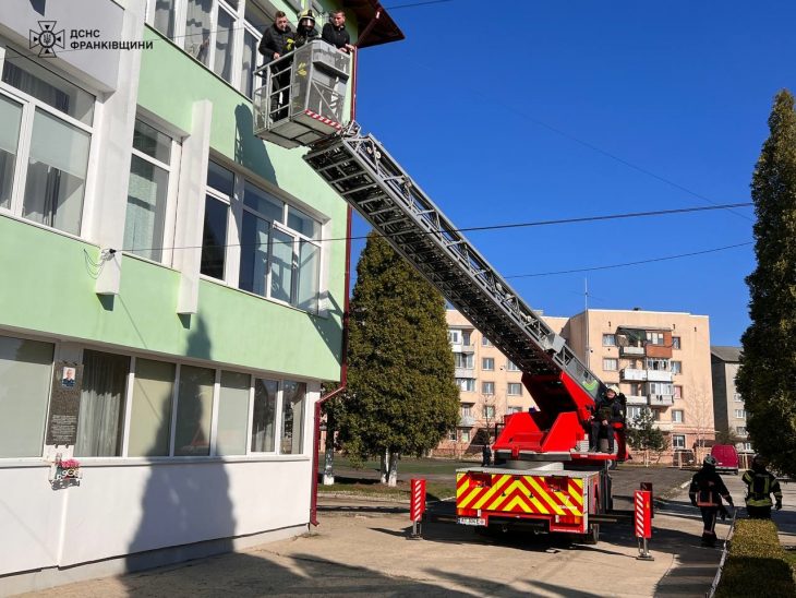 Сьогодні, такі практичні тренування з залученням пересувного Пункту управління відбулися в місті Коломия. За легендою навчань, внаслідок ракетного обстрілу, відбувся обвал конструкції будівлі місцевого ліцею із загорянням на площі 30 мкв.