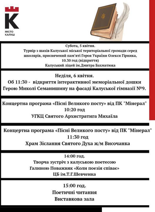 Шаховий турнір, творчі зустрічі та поетичні читання: про заходи на вихідні в Калуській громаді