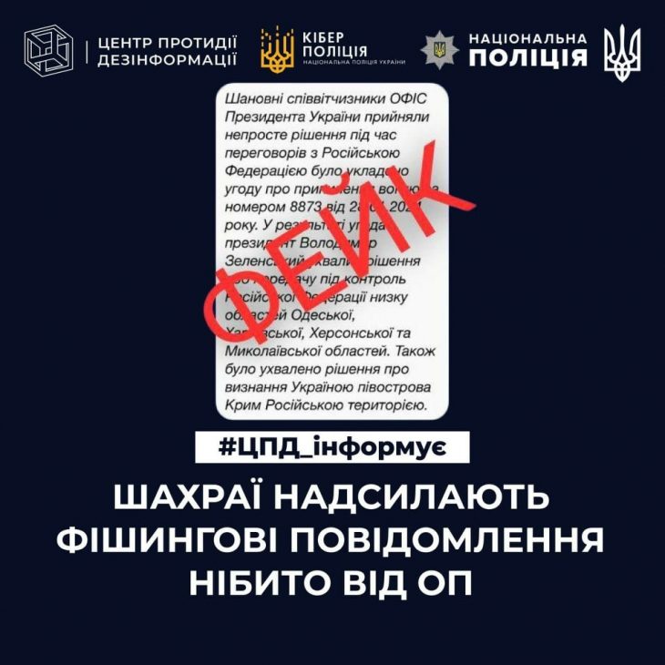 Шахраї надсилають фішингові повідомлення нібито від Офісу Президента