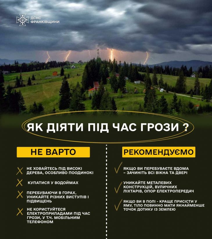 Протягом доби 25 липня очікується гроза, град (6-19 мм), пориви вітру 15-20 м/с.