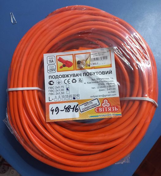– подовжувач побутовий ТМ «Світязь», арт. 49-48-16, ПВС 2*1.00, 30м.