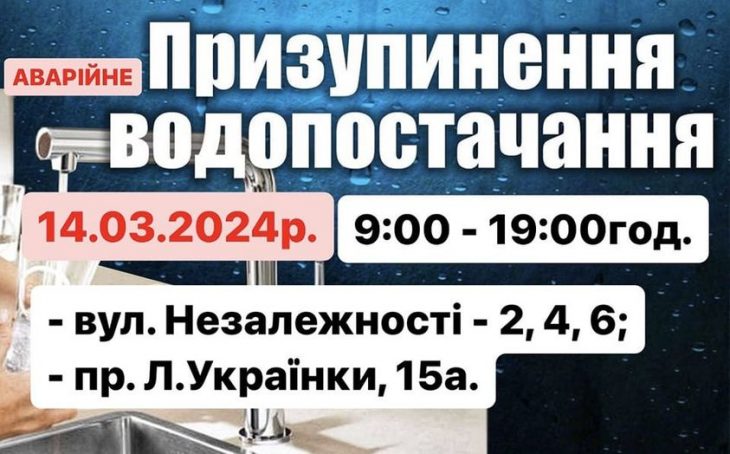 Водопостачання тимчасово призупиняється для проведення аварійних ремонтних робіт на вул.Незалежності (Підкачувальна насосна станція №4).
