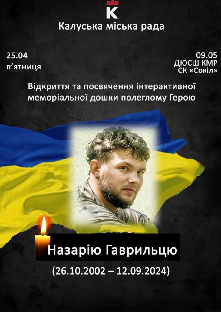 25 квітня в Калуші відкриють інтерактивну меморіальну дошку полеглому Герою Назарію Гаврильцю.