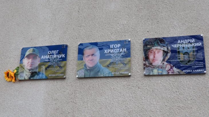 Вчора у філії №10 Коломийського ліцею №9 відкрили меморіальні дошки трьом захисникам, які віддали свої життя за Україну. Олегу Анатійчуку – кулеметнику стрілецького батальйону 10-ї гірсько-штурмової бригади «Едельвейс», Ігорю Христану – старшому стрільцю гірсько-штурмової роти 109-го окремого батальйону 10-ї гірсько-штурмової бригади «Едельвейс», Андрію Чернецькому – водію 3 відділення 3 взводу оперативного призначення роти оперативного призначення стрілецького батальйону 50-го полку імені полковника Семена Височана.