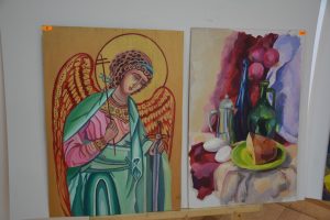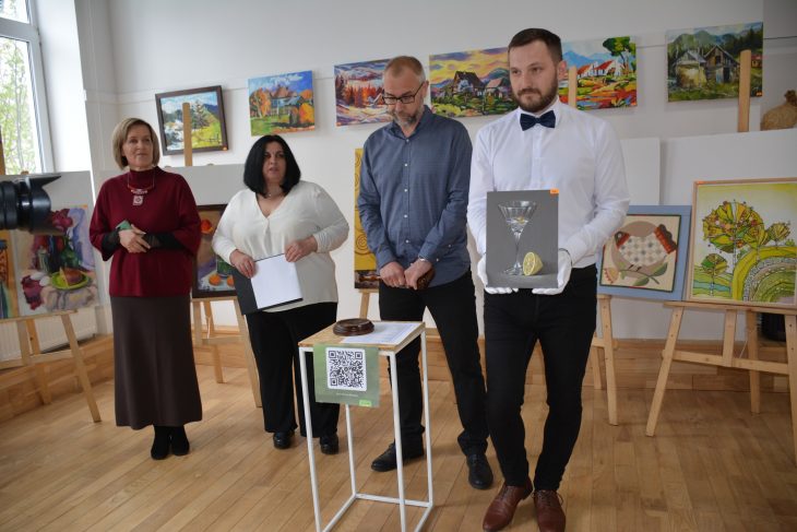 На аукціоні було представлено близько 50 лотів: чудові картини та вироби ручної роботи, виготовлені учнями та викладачами Надвірнянської художньої школи.