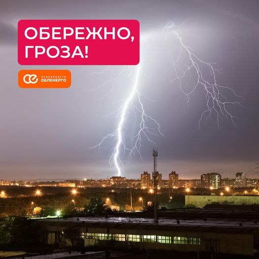 Енергетики застерігають бути особливо обережними. Тримайтеся подалі від дерев, рекламних щитів, ремонтних будівель та ліній електропередачі. За можливості перебувайте вдома. Якщо гроза застала вас на вулиці – сховайтеся в найближчому приміщенні.