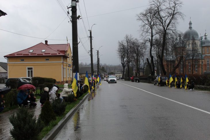 В Делятині на колінах зустріли скорботний кортеж із тілом загиблого військовослужбовця із львівщини Андрія Луцика
