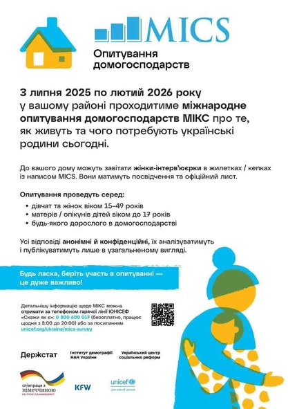 З липня 2025 по лютий 2026 року у Калуській громаді проходитиме міжнародне опитування домогосподарств МІКС про те, як живуть та чого потребують українські родини сьогодні