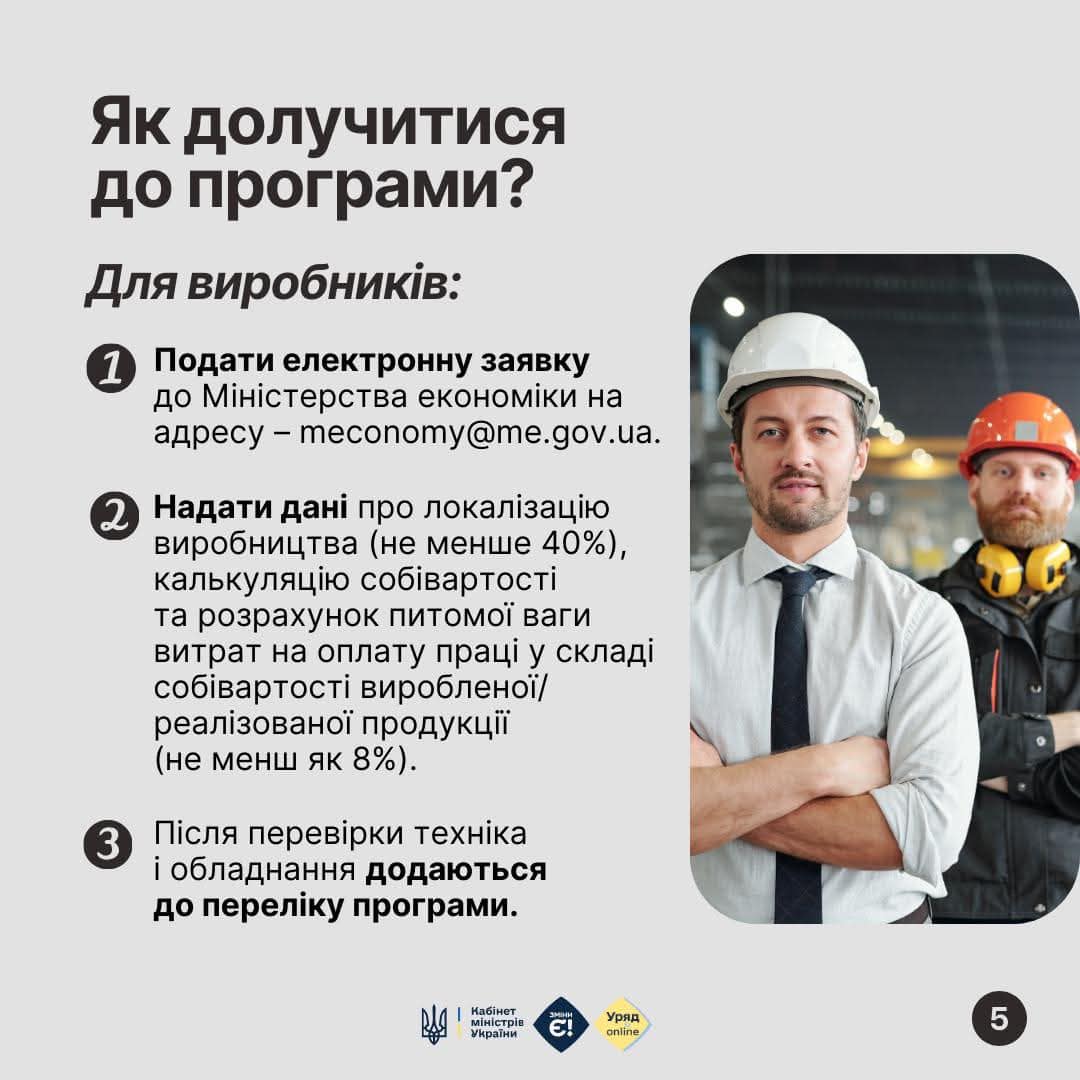 Такий механізм спрямований на те, аби допомогти бізнесу купувати нове обладнання та підтримувати українських виробників.