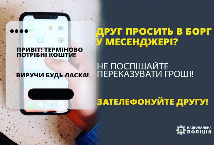 Правоохоронці нагадують, якщо у месенджері знайомий звертається з проханням позики коштів – не поспішайте перераховувати гроші, зателефонуйте до нього та переконайтеся у правдивості інформації.