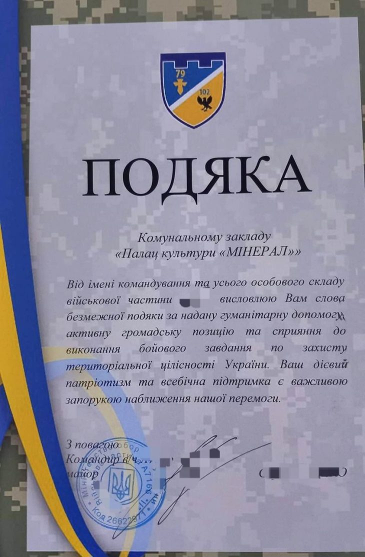 Колектив палацу культури «Мінерал», що у Калуші отримав подяку за сприяння ЗСУ від одного із бойових підрозділів