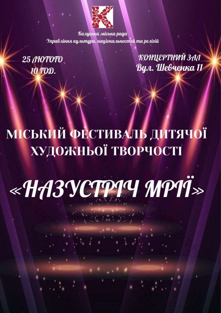 Міський фестиваль дитячої художньої творчості «Назустріч мрії» відбудеться 25 лютого у Концертному залі Калуша. Пише Голос-Інфо з посиланням на Калуську міську раду Свої таланти демонструватимуть діти віком від 6 до 18 […]