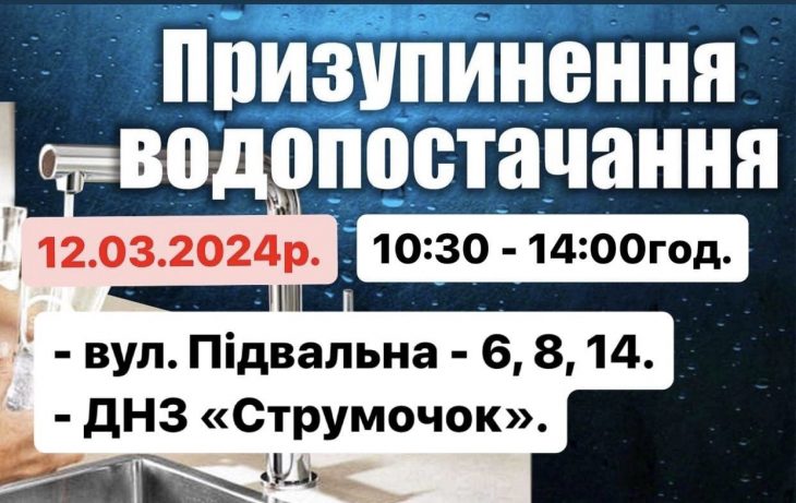 У місті Калуш тимчасово призупинено водопостачання 12 березня з 10:30 до 14:00. Пише Голос-Інфо з посиланням на Калуську міську раду Тимчасово без водопостачання: вул. Підвальна – 6, 8, 14. ДНЗ «Струмочок». […]