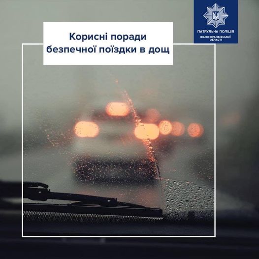 Патрульна поліція Івано-Франківська закликає учасників дорожнього руху бути особливо уважними оскільки на території області дощить
