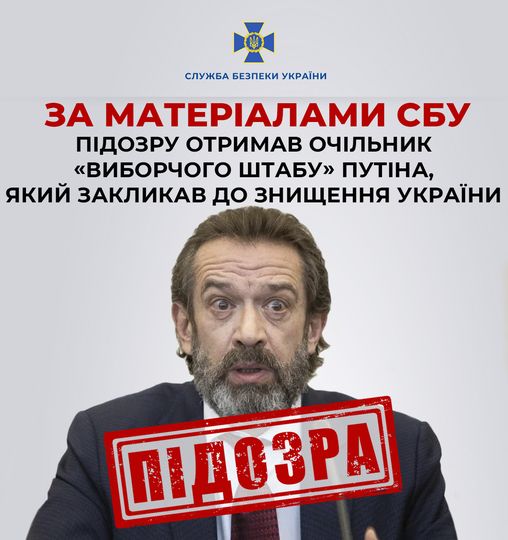 За матеріалами СБУ підозру отримав очільник «виборчого штабу» путіна, який закликав до знищення України