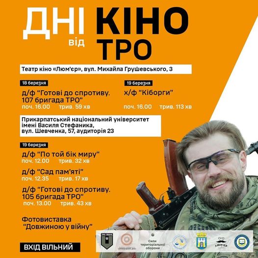 18 та 19 березня відбудеться безкоштовний показ документальних стрічок і фотовиставки «Довжиною у війну», які є створені захисниками України. Місцями проведення є театр кіно “Люм’єр” та у Прикарпатський національний університет […]