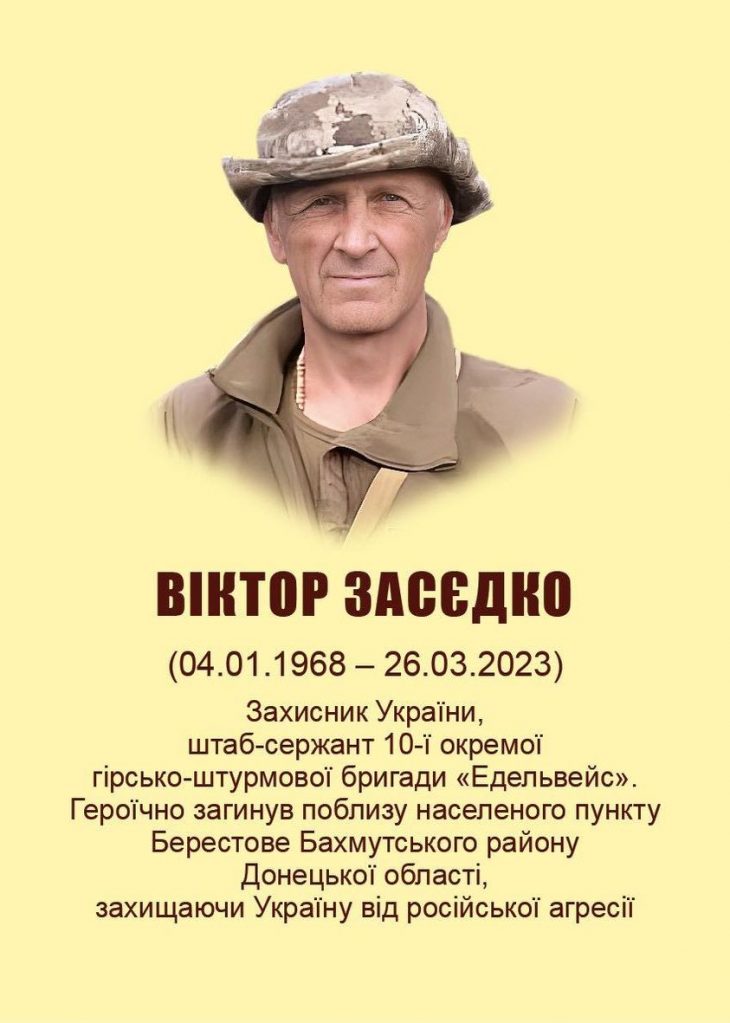 26 березня 2023 року біля населеного пункту Берестове Бахмутського району загинув Засєдко Віктор Григорович. Пише Голос-Інфо з посиланням на Галицьку територіальну громаду У вересні 2022 року Віктор поповнив лави ЗСУ у […]
