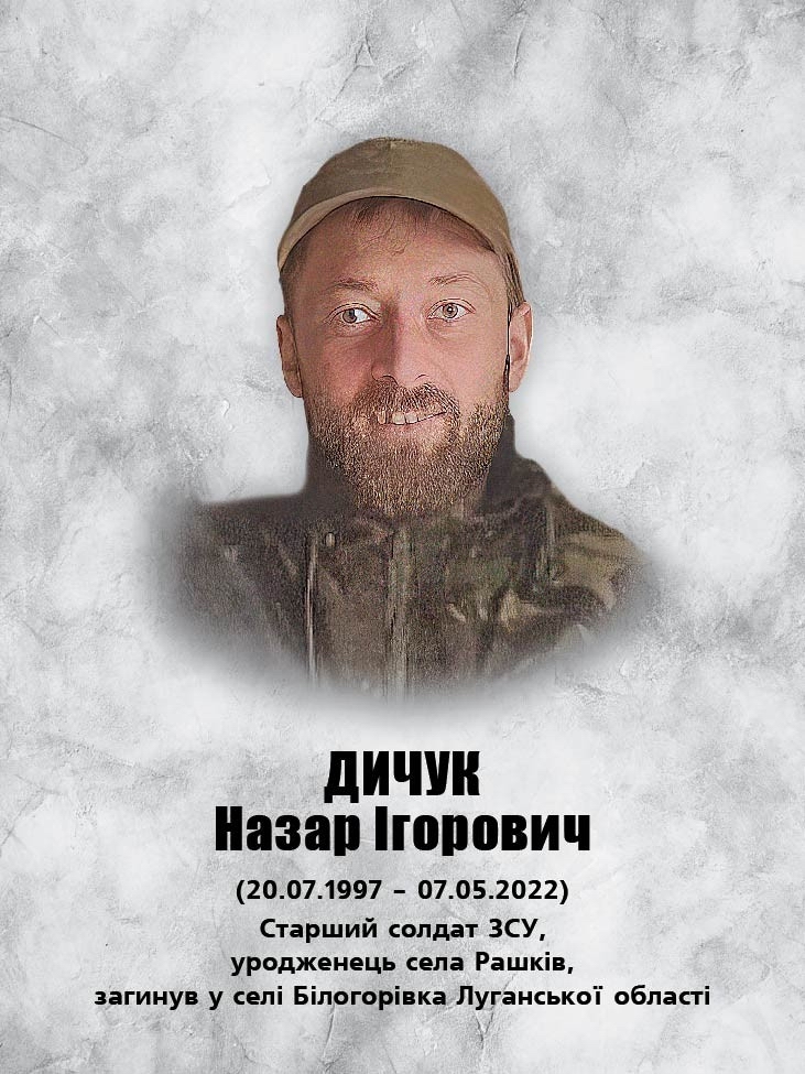 Сьогодні, 7 травня, минає друга річниця від дня загибелі нашого земляка, Захисника України, Назара Дичука, старшого солдата, стрільця-снайпера 2 гірсько-штурмового взводу, 1 гірсько-штурмової частини А1778, уродженця села Рашків. Пише Голос-Інфо […]