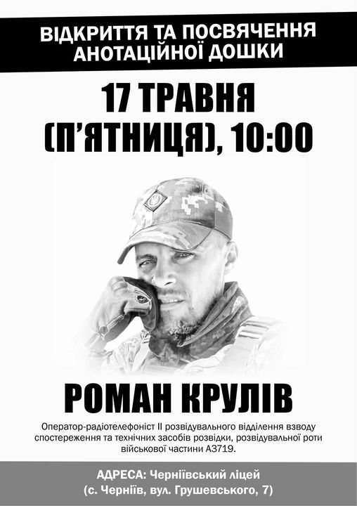 В Івано-Франківську відбудеться відкриття анотаційної дошки Герою України – Роману Круліву