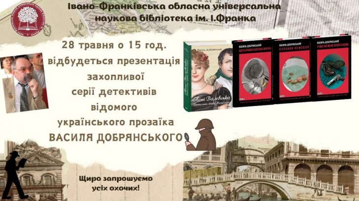 В Івано-Франківську відбудеться презентація серії детективів відомого українського прозаїка Василя Добрянського