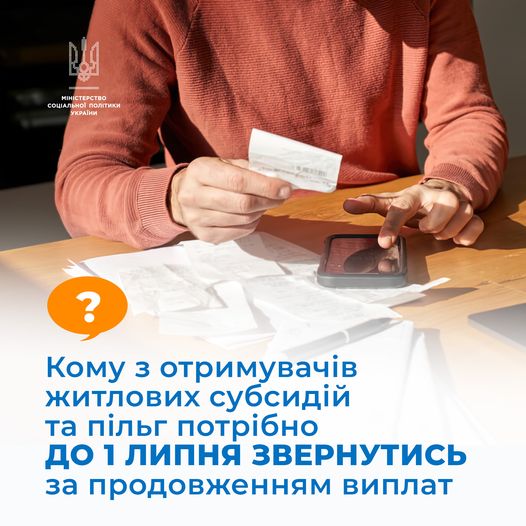 Кому з отримувачів житлових субсидії та пільг потрібно до 1 липня звернутись за продовженням виплат