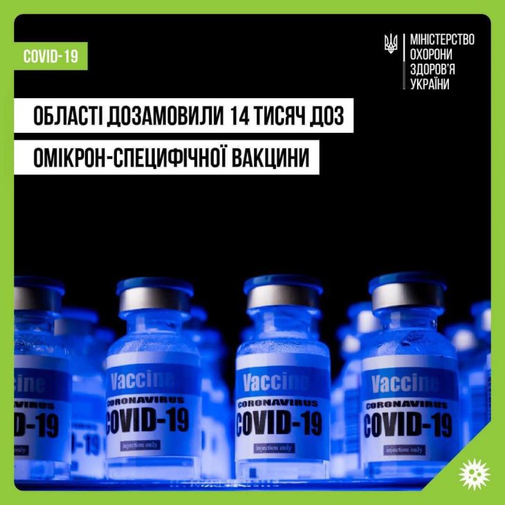 Київ та 20 областей дозамовили близько 14 тисяч доз омікрон-специфічної вакцини для проведення безоплатних щеплень проти COVID-19