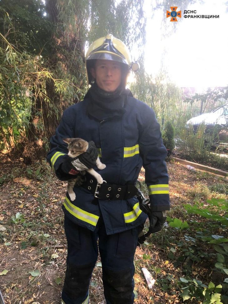 Прикарпатські рятувальники врятували пухнастого сміливця з висоти