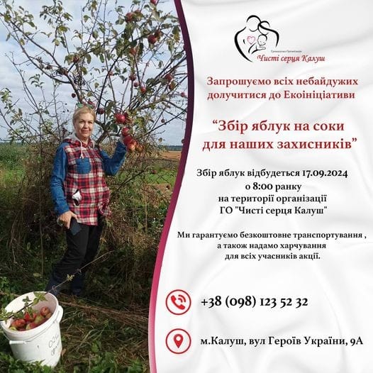 Громадська організація «Чисті серця Калуш» оголошує про старт благодійної акції зі збору яблук