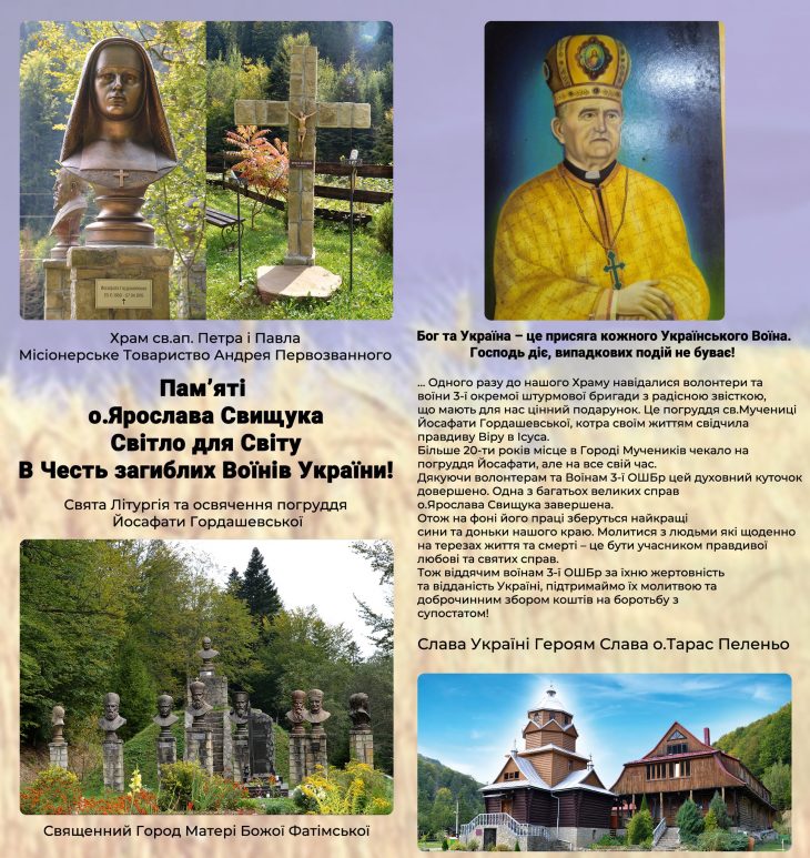 6 жовтня 2024 року Б., у м. Яремче (Дора) на вул. Камʼянка 31/1, відбудеться освітньо-благочинний захід, під час якого Преосвященний владика Василій Івасюк, єпарх Коломийський, освятить скульптуру Йосафати Гордашевської та […]