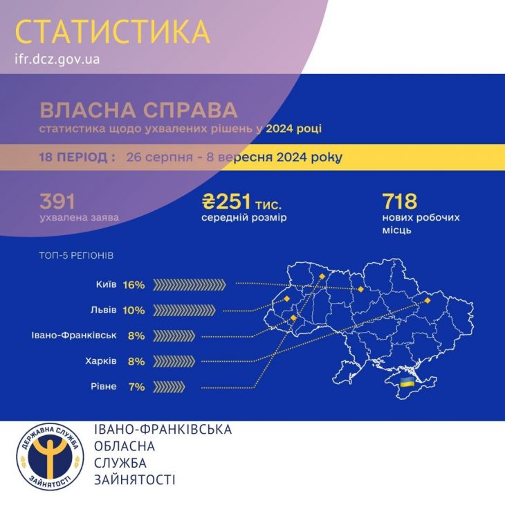 За результатами вісімнадцятого періоду подачі заяв на отримання мікрогрантів згідно програми «Власна справа», який тривав з 26 серпня до 08 вересня 2024 року, Івано-Франківська область увійшла у трійку лідерів серед […]