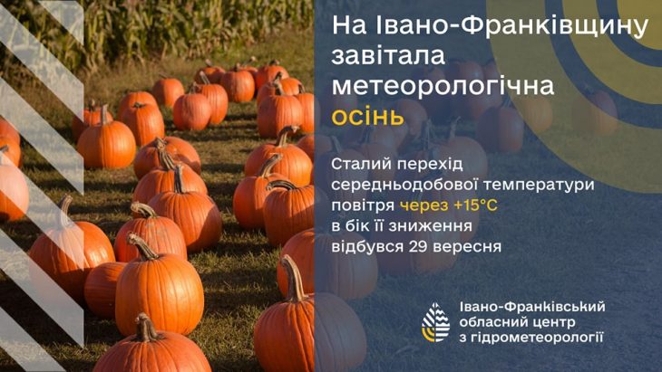 За даними спостережень метеостанцій області сталий перехід середньодобової температури повітря через +15°С в бік її зниження відбувся 29 вересня, що знаменує початок метеорологічної осені. Інформує Голос-Інфо, посилаючись на Івано-Франківський обласний […]