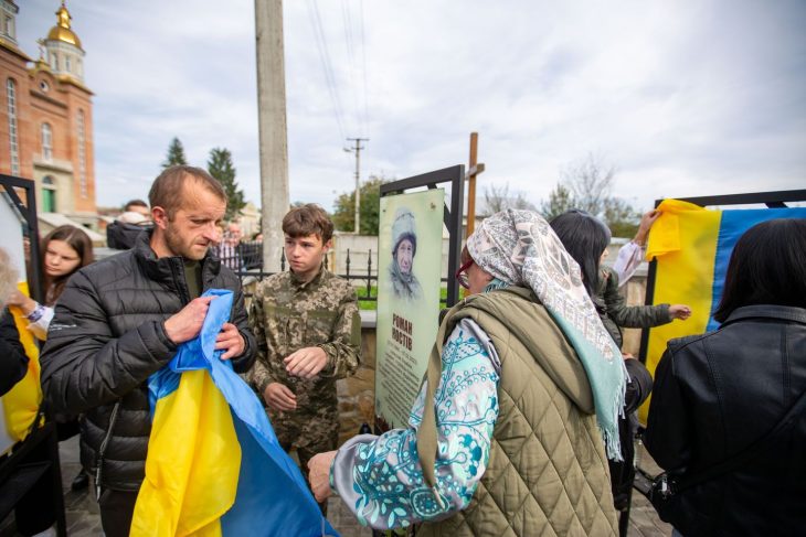 У Підпечерниках біля памʼятника Степану Бандері освятили 12 памʼятних знаків Захисникам