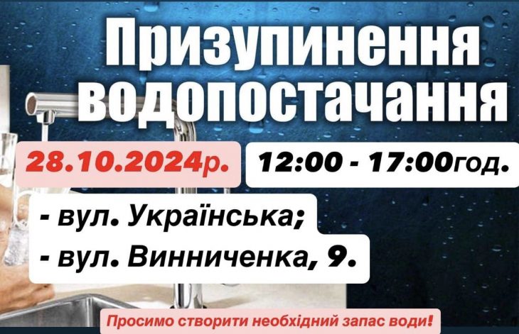 Тимчасове призупинення водопостачання у понеділок, 28 жовтня з 12:00 до 17:00. Пише Голос-Інфо з посиланням на Калуську міську раду Тимчасово без водопостачання: вул. Українська; вул. Винниченка, 9. Водопостачання тимчасово призупиняється […]