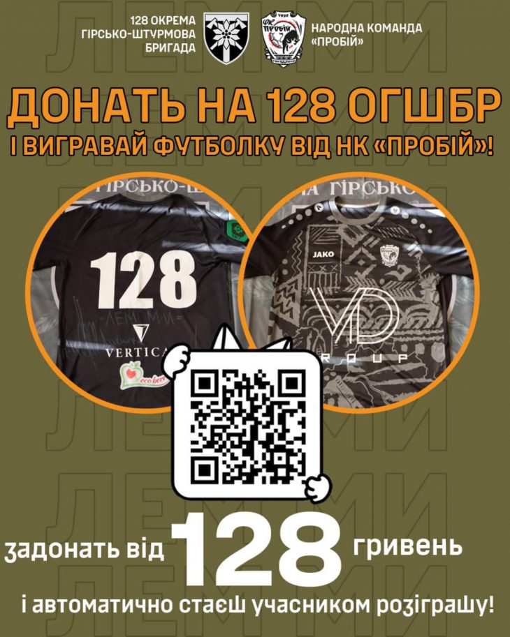 По 128 гривень для 128 ОГШБр та футболка з номером 128