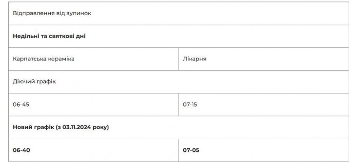 У Калуші в недільні та святкові дні буде змінено графік руху автобуса за маршрутом № 6