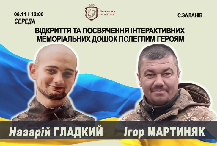 Відбудеться відкриття інтерактивних меморіальних дощок двом полеглим Героям з Рогатинської громади