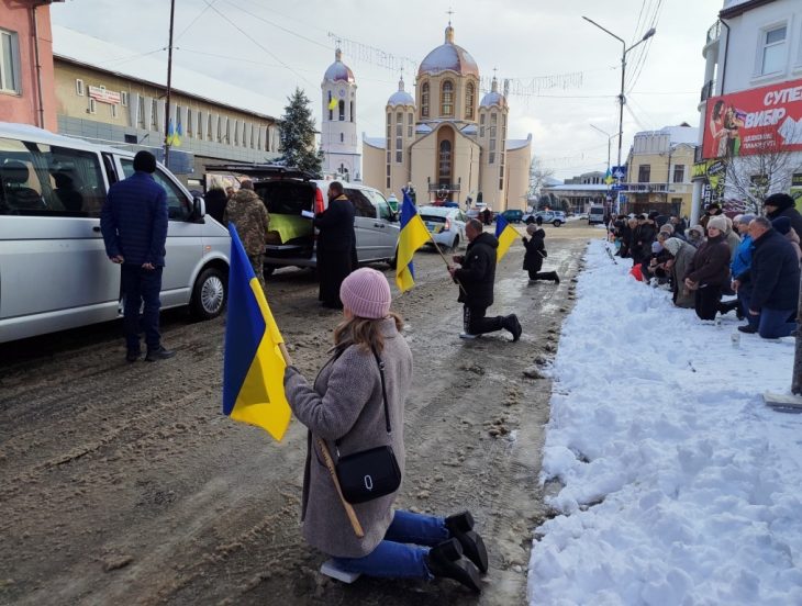 На Тлумаччині на колінах зустріли загиблого захисника Василя Рибчина
