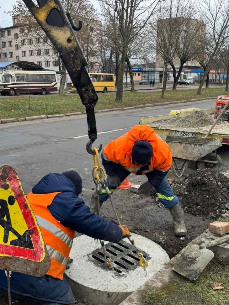 Щоденна робота калуських комунальників: встановлення дощеприймача, підрізка дерев